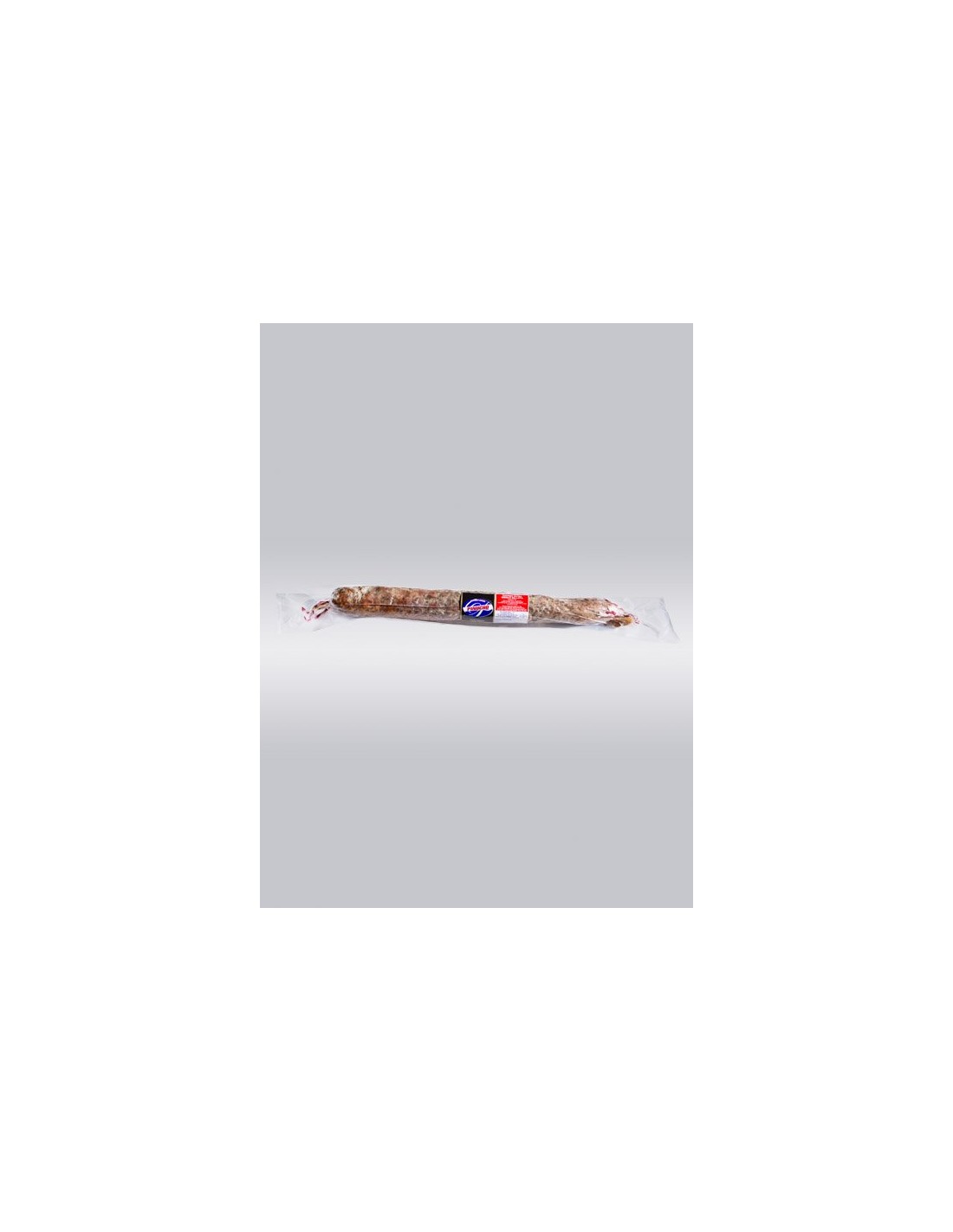 Embutido curado, elaborado con una mezcla de carne picada de cerdo de bellota, tocino o grasa de cerdo ibérico, adicionada de sal, especias y aditivos, amasada y embutida en tripa natural, que han sufrido un proceso de maduración-desecación, que le asegura una buena estabilidad, así como un olor y sabor característicos.